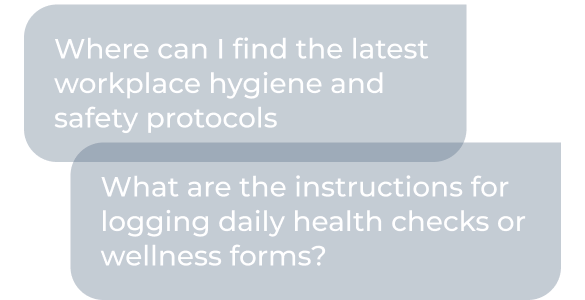 Instantly answer questions about hygiene, visitor access, and safety procedures with AI-backed responses from your approved health and safety protocols